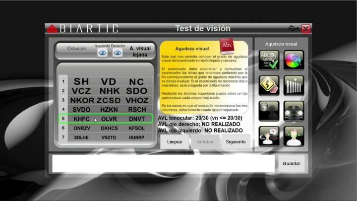 binocular) en caso de que la respuesta sea correcta se puede continuar con el examen, caso contrario se deberá